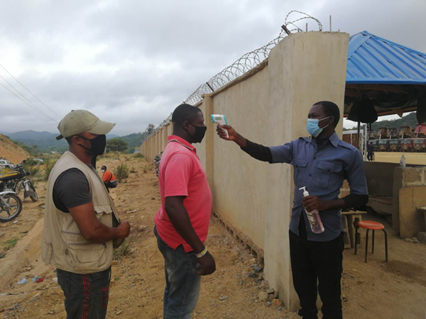 自新型冠狀病毒肺炎疫情發(fā)生以來,尼日利亞項(xiàng)目部領(lǐng)導(dǎo)按照公司統(tǒng)一安排,高度重視疫情防控工作,加強(qiáng)領(lǐng)導(dǎo),根據(jù)當(dāng)?shù)匾咔樾蝿荩沿?zé)任抗在肩上,抓在手中,采取有力措施,確保疫情防控和生產(chǎn)工作順利進(jìn)行。堅(jiān)持每天督查安全,督促生產(chǎn);實(shí)時(shí)通報(bào)國內(nèi)疫情防控情況,及時(shí)了解尼日利亞的疫情動(dòng)態(tài),加強(qiáng)疫情防范措施的宣傳,堅(jiān)持涉外無小事原則,積極傳播正能量。同時(shí),密切關(guān)注職工思想動(dòng)態(tài),解決職工實(shí)際困難,穩(wěn)定隊(duì)伍保證生產(chǎn);項(xiàng)目部想盡各種方法聯(lián)系購買渠道購買防護(hù)口罩、消毒液、免洗手消毒液醫(yī)用酒精等,對宿舍,辦公室,工作場所等進(jìn)行定期消毒。食堂增加每日的肉品供應(yīng)量,增強(qiáng)職工的免疫力。營地大門口實(shí)行封閉式管理。多項(xiàng)舉措做好疫情防控和隊(duì)伍穩(wěn)定工作;同時(shí)項(xiàng)目部制定和完善各項(xiàng)應(yīng)急預(yù)案,根據(jù)疫情的發(fā)展情況,適時(shí)啟動(dòng)應(yīng)急預(yù)案,做出相關(guān)決策。 主要措施: 1、項(xiàng)目部對外部進(jìn)場人員實(shí)行嚴(yán)格準(zhǔn)入制度,對符合疫情防控要求的人員準(zhǔn)予進(jìn)入工地。 2、對工地內(nèi)工作人員(包括當(dāng)?shù)貑T工),建立健康監(jiān)測制度,每天兩次對全部人員進(jìn)行體溫測量和登記,發(fā)現(xiàn)發(fā)熱特別是伴有咳嗽、咽喉腫痛等狀況身體異常人員,立即采取隔離、送醫(yī)等應(yīng)急處置措施。  當(dāng)?shù)貑T工進(jìn)場前體溫檢測  當(dāng)?shù)貑T工洗手液消毒 3、做好宣傳教育工作,派發(fā)資料及宣傳疫情防控知識(shí),加強(qiáng)個(gè)人衛(wèi)生教育。  新冠疫情知識(shí)宣傳教育   4、對配送材料、物資等外來人員,不得車輛進(jìn)場后,車上人員出駕駛室,貨物、物資有項(xiàng)目部安排工地內(nèi)人員接受和裝卸,并做好安全防護(hù)措施。  對外來材料及車輛消殺 5、做好防范措施,車間、礦區(qū)配備測溫槍、消毒液、口罩等應(yīng)急防范物品,保持宿舍空氣流通,落實(shí)衛(wèi)生消毒制度,切實(shí)做好施工現(xiàn)場衛(wèi)生管理、個(gè)人衛(wèi)生防護(hù),及時(shí)開展的病媒生物防治與消殺,有效降低病媒生物密度。  接送員工上下班車輛消毒  對考勤等記錄消毒  對現(xiàn)場工棚消殺 防疫物資儲(chǔ)備  生活物資儲(chǔ)備 6、安排專人實(shí)施24小時(shí)值班和項(xiàng)目部領(lǐng)導(dǎo)帶班,并保持通信通暢。 7、實(shí)行日報(bào)告和零報(bào)告制度,做到早發(fā)現(xiàn)、早報(bào)告、早隔離、早治療,分層隔離,及時(shí)落實(shí)。 |