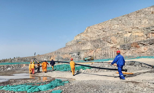 在嚴(yán)峻的環(huán)保形勢下,為了更好的控制灰塵對大氣環(huán)境的污染,棗莊申豐水泥礦山在各個采礦平臺鋪設(shè)了噴射系統(tǒng),對正在進(jìn)行挖裝的作業(yè)區(qū)都配置了降塵水炮。因每組水炮都有一定的噴射范圍,現(xiàn)場管理人員根據(jù)現(xiàn)場礦石開采及裝運情況,經(jīng)常需要對噴射裝置及管路進(jìn)行挪移。