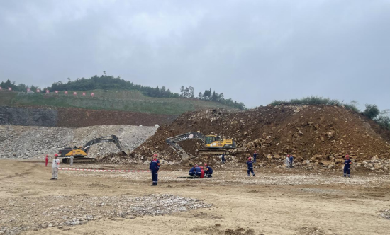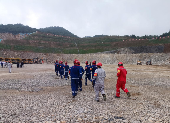 演練現場模擬遇強降雨后邊坡發生垮塌事故,在接到險情報告后,應急指揮部立即啟動應急預案,組織各救援小組趕赴現場