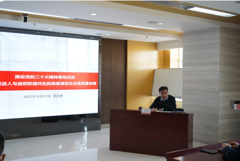 郭正勇從三方面進行了深入闡述和精彩宣講。一是深刻理解二十大報告中關(guān)于推動綠色發(fā)展,促進人與自然和諧共生的深刻內(nèi)涵;二是全面把握人與自然和諧共生新任務(wù),聚力踐行央企綠色發(fā)展使命擔(dān)當(dāng);三是聚焦近期工作,強化擔(dān)當(dāng)落實。